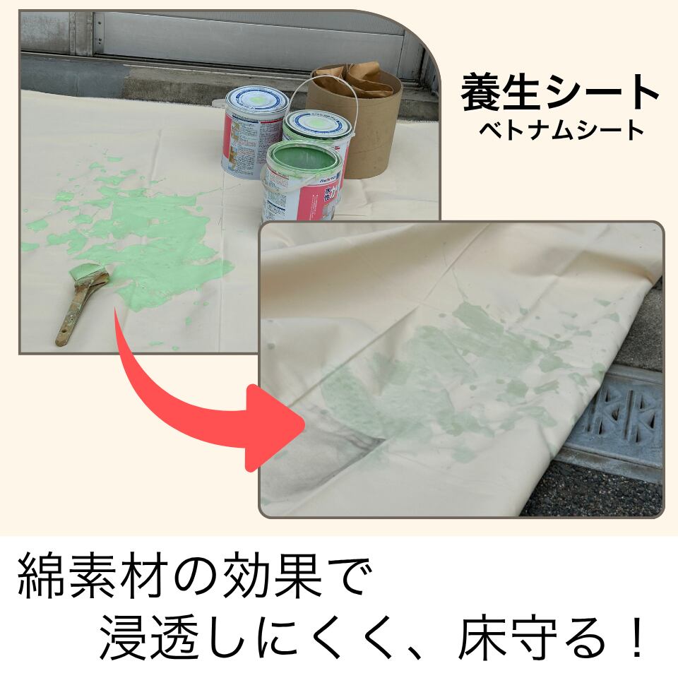 布製のしなやかさと強度を活かしたこの養生シートは、プロの方にも一般の方にもおすすめのアイテムです。