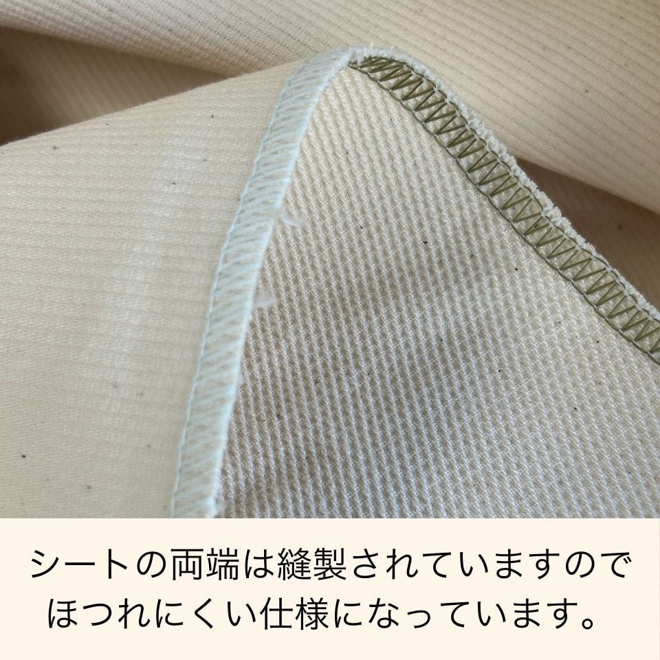 シートの端はしっかりと縫製されており、ほつれにくく長持ちする仕様です。
